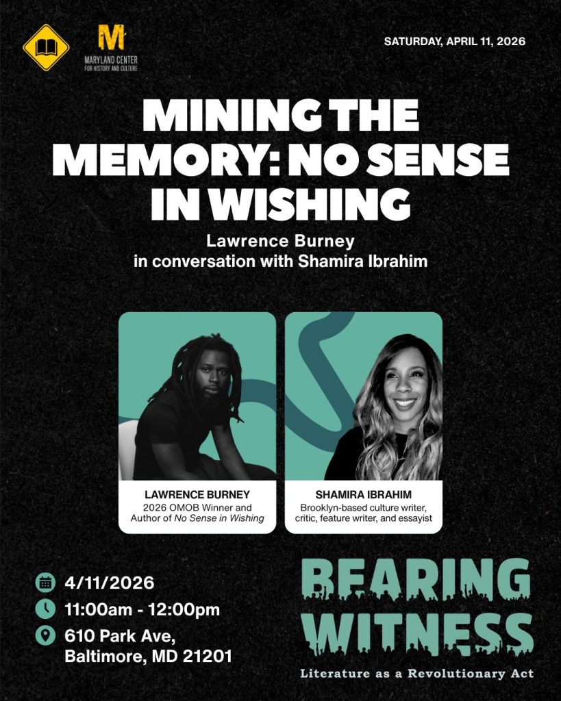 Maryland Humanities will be at this year’s CityLit Festival with featured author and 2026 One Maryland One Book author, Lawrence Burney!