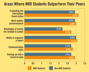 History Day is not a contest, it’s a year-long learning experience that helps students discover skills of research, time management, group collaboration, historical analysis, and many other skills. National History Day published a report that details some findings on areas where students improve through participation in a History Day project.